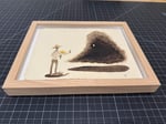 Pedestal mounted and framed in a solid wood shadow box style frame